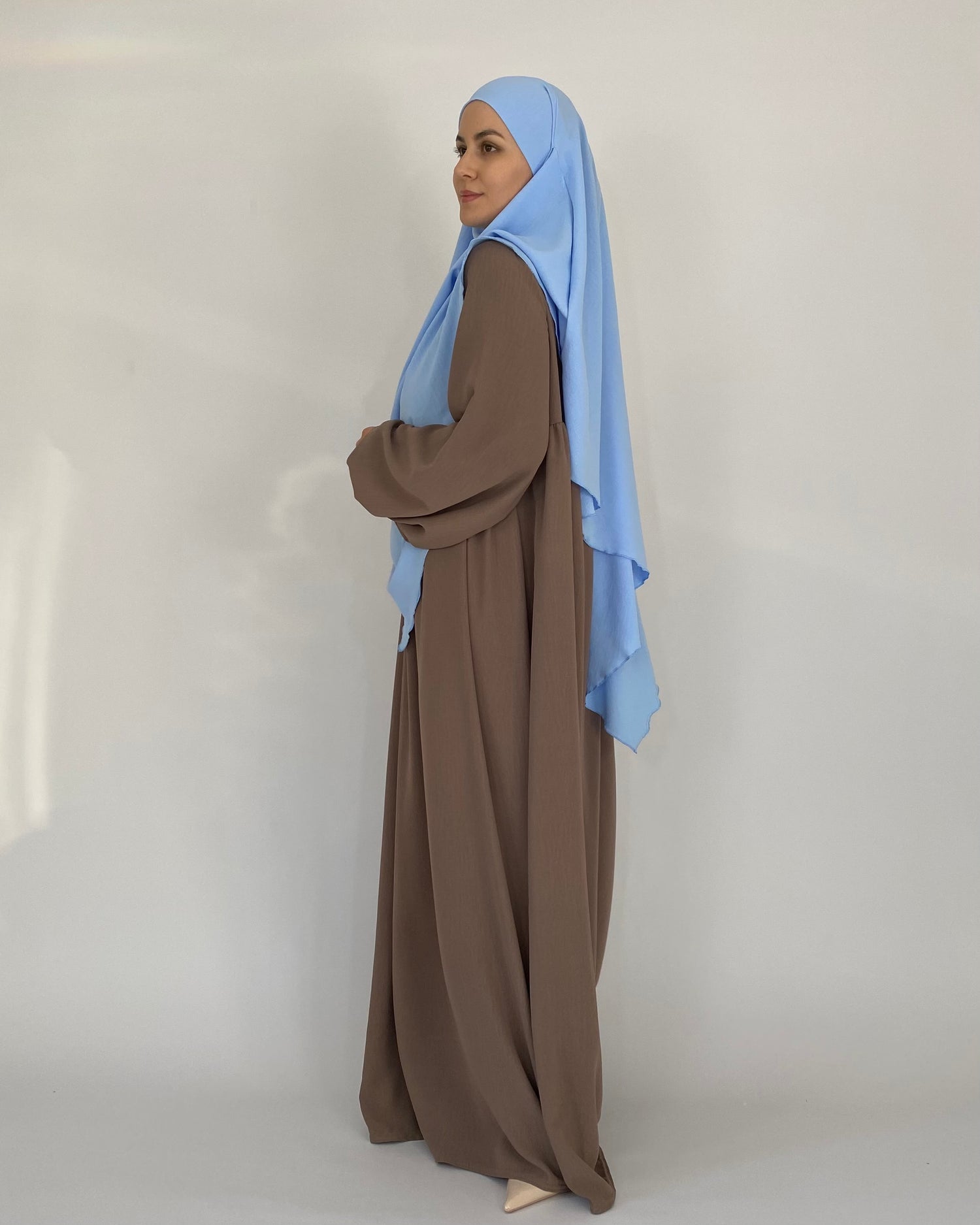 Man fühlt sich wie eine Prinzessin. Das Kleid fällt so schön und der Stoff ist etwas schwerer, wodurch er aber eben so schön fällt. Sehr angenehm und kühl. Schöne Abaya für den Sommer. ☀️